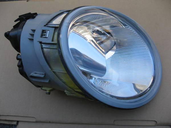 VW New Beetle Complete Right Headlight Assembly with bulbs. 2 bulb unit (no parking light).