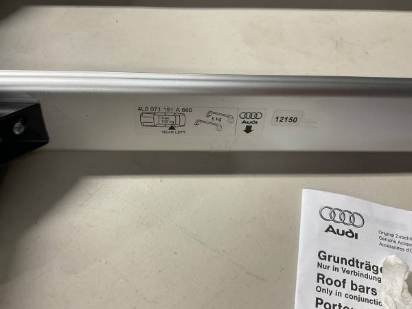 Hello I have a Genuine Audi Accessories 4L0071151A666 Base Carrier Bar for Q7 its fits 2007 -2015 it’s comes with keys its original it’s comes with owner manual I don’t need it that’s why iam selling them come check it out show contact info