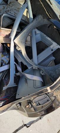 What's available Front bumper with lights and grill Passenger door and glass Trunk and rear bumper Fender wells Some dash pieces and miscellaneous stuff