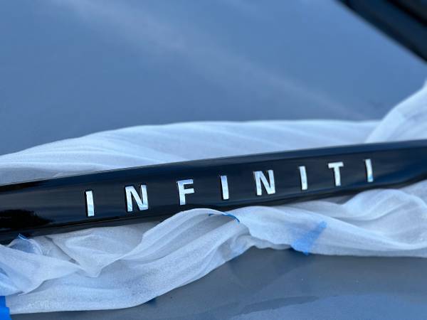 OEM Infiniti Q50 Trunk Chrome Trim Moulding Part# 84810-4HB0A Q50 rear trunk trim chrome delete with "Infiniti" Lettering Cutout. Trim fits 2014-2021 Infiniti Q50 Sedan's. -Trim has has been wrapped...