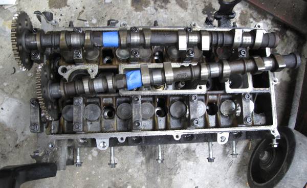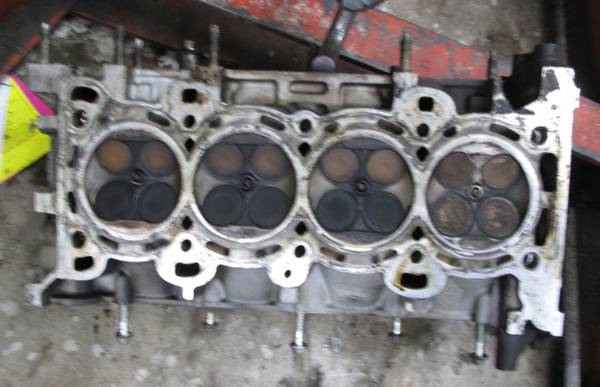 Cylinder head from a 2008 4 cylinder Ford Ranger that threw a rod. Head and cam journals look good. There is definitely one bent exhaust valve in #1 cylinder and probably two. Everything else looks good. Includes the camshafts and cam follower buckets.
