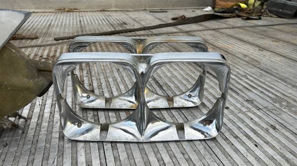 6 hubcaps 2 headlight trim rings, 2 blinkers , 2tail lights and all mounting parts , side markers with cadilliac emblems and wires for light bulbs . All for 200.00 see pics