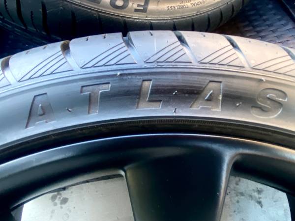 19’ Inch Tesla Model 3 “OEM” Satin Black Wheels With Atlas Sport Performance Tires 5x114.3 Bolt Pattern Standard Tesla Fitment Tesla Performance Model 3 Satin Black Wheels Front Wheels 19 x 8.5 Rear...