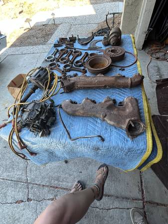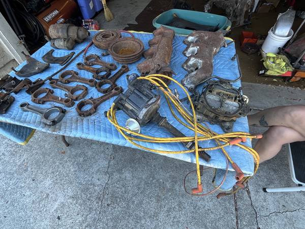 1971 Chevelle complete pullout engine. Needs rebuild. Rough bored to 413 ci. Has matching heads with valves ,springs, rockers. 854 casting date code L70 front pad CLB. This was a complete pullout from my 71 El Camino. Block, crank, rods. Has intake with Quadrajet, distributor, starter, harmonic balancer, timing cover, oil pan. all pullies, all nuts and bolts, exhaust manifolds, water pump all brackets for alternator power steering and a/c compressor. Comes with a/c compressor, power steering pump, alternator. Complete, complete, complete! pick up in East Bay. no email or text tag! If interested call . $1100. Thanks