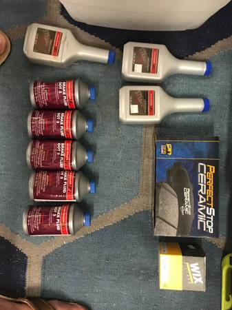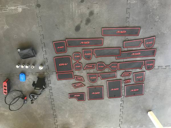 Front seat covers, Console mats, wheel locks, multi charger, phone holder, fob cover, about 16 qts of engine oil, brake fluid, steering wheel fluid, oil filter, and rear brake pads. About $400 with of stuff not including tax. For less than the price of the car seats, all this can be yours. Come get it. Not selling separately.