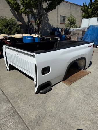Removed from a 2025 C2500 HD Silverado Crew Cab 8 foot bed. Brand new Silverado C2500 bed with accessories. New truck was converted to a utility body and these are the removed new components....