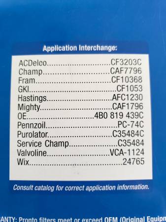 Brand New unopened and sealed OEM Audi replacement Charcoal Cabin Air Filter. These are the best OEM replacement charcoal filters and they work well for a long time. Costs $28. Carbon and Charcoal filters Dust, Pollen, Fumes & Odor. I sold the car and have this extra leftover. Clean from a non-smoking household. Email me if you're ready to pick it up.