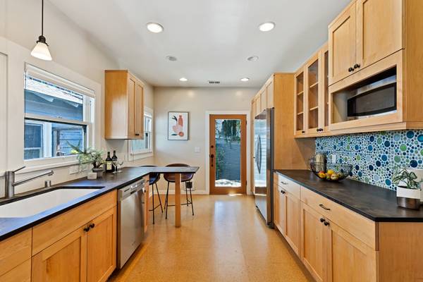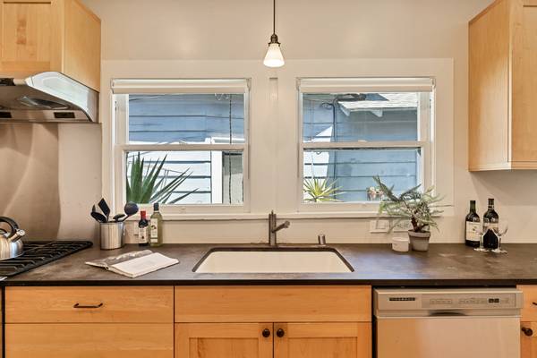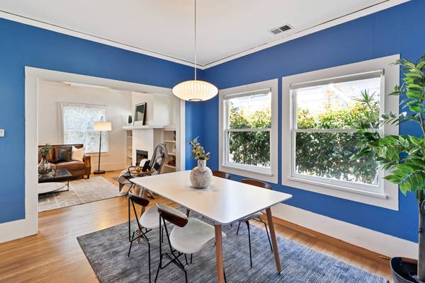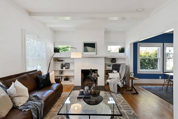 Step inside this classic Berkeley bungalow and feel the creative energy waiting to be claimed. With warm hardwood floors, rustic beamed ceilings, and a welcoming fireplace framed by built-in bookshelves, the living room invites quiet reflection or inspired gatherings. The formal dining room leads to a spacious, updated kitchen perfect for brewing coffee as the light pours in, or sketching ideas at the table. Two generous bedrooms provide restful retreats, while the back deck calls for summer evenings surrounded by the textures of a mature succulent garden. Even the cozy front porch seems designed for scribbling in a notebook or painting with morning light.