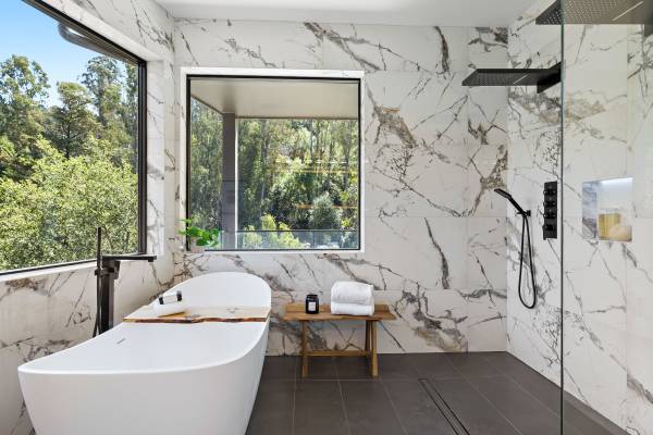 The home’s architectural style embraces volume and light, with expansive windows and soaring ceilings that draw in natural light and surrounding greenery. Every room feels intentional, blending bold modern design with a grounded sense of place. Located just minutes from Montclair Village, hiking trails, parks, and top-rated schools, this one-of-a-kind property brings contemporary elegance to one of Oakland’s most desirable neighborhoods.