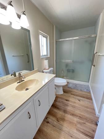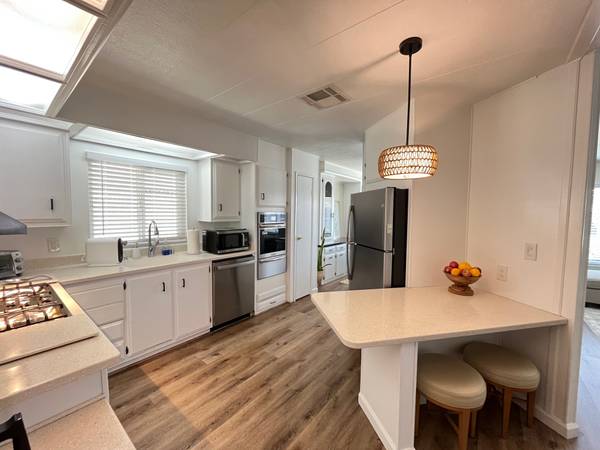 Move in Ready 2 bedroom, 2 bath. Spacious living room and dining area with builtins. Kitchen with solid surface counters, newer appliances, & breakfast nook. Separate family room with built ins and decorative shelves, & sliding door to enclosed porch area- perfect for additional storage or office space. Hall bath with single sink and tub shower. Indoor laundry with washer and dryer. Ample sized bedrooms, Walk in closet in primary & a primary bath with single sink, stall shower, & linen storage. Laminate flooring throughout most of home. At the outside, double pane windows, A/C, storage shed, usable rear yard, nice rear porch area, & a ramp. Short walk to the clubhouse & pool area. Close to downtown Niles and easy access thru Niles canyon to the Pleasanton area.