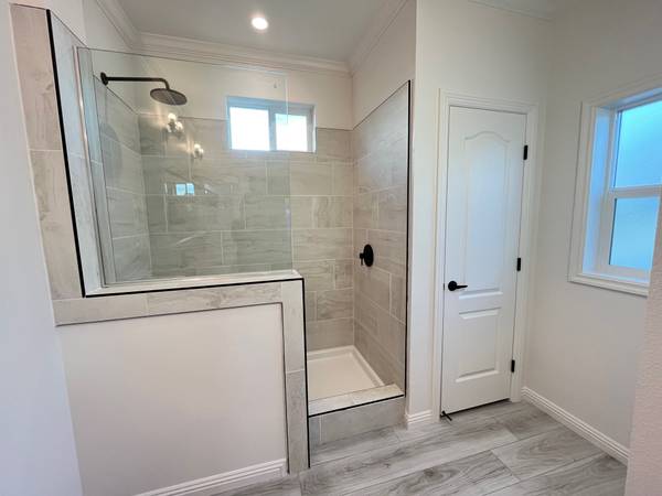✴Primary bath w/solid surface counters, elegant stall shower, linen storage