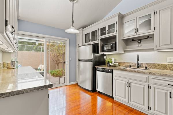 THIS IS FOR SALE. Rarely available, prime San Leandro real estate! Located in the exclusive Floresta Villas gated community, this property offers the ultimate blend of East Bay convenience and tranquil suburban living. As a prized corner lot, the home boasts a perfectly manicured front & back yard, creating exceptional curb appeal. Inside are light-filled and spacious living room/ dining combo, featuring soaring vaulted ceilings, laminate flooring, and a cozy fireplace—a true centerpiece for family gatherings. Just beyond the dining area and updated kitchen, one can access a private patio perfect for year-round California entertaining. This home features spacious bedrooms and a luxurious primary suite, a substantial walk-in closet, direct sliding door access to the backyard, and an en suite bathroom. The updated primary bath showcases a modern walk-in shower, dual sink vanity and ample storage space. This community provides the luxury of a secure community gate, a sparkling pool, and a relaxing spa. Location-wise, this home places you within minutes from top area landmarks including the waterfront beauty of the San Leandro Marina Park and unparalleled Bay Area access, being minutes from HWY 92 (San Mateo Bridge), HWY 880 and the Oakland International Airport.