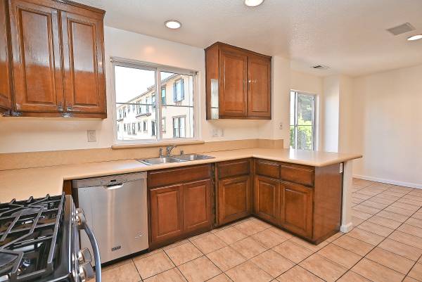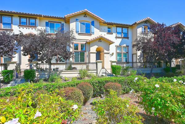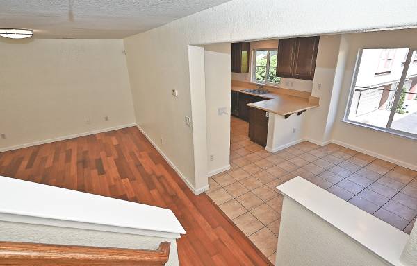 Discover this move-in ready gem — a spacious and bright 3 bedroom, 2.5 bathroom townhome built in 2002, located in a desirable gated community Albela that opens directly to a beautiful community park. Low HOA fees, only $192/mo. Step inside to find updated flooring throughout and an inviting open layout. The modern kitchen stands out with sleek stainless steel appliances, updated finishes, and a cozy breakfast nook. A generous dining area flows seamlessly into the living room, highlighted by soaring vaulted ceilings. Upstairs, you’ll find three generously sized bedrooms, including a primary suite with a tastefully updated en-suite bathroom. All bathrooms have been beautifully refreshed. The home also features a convenient upstairs laundry area and abundant storage space.