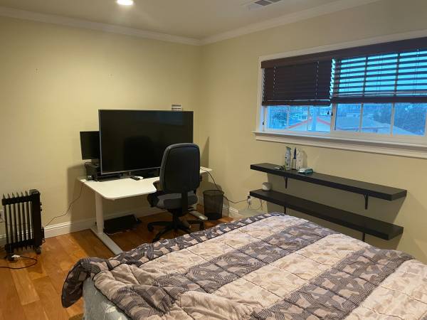 We're two guys in our late 20s and late 30s — one works in tech and loves camping, cooking, and music; the other works in biotech and enjoys going to concerts. A couple lives in the back unit, which has a separate entrance. The house is calm and quiet on weeknights, with the occasional shared dinner, movie night, or social gathering.
