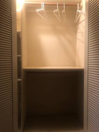 Bedroom is 12' x 14', has access to large deck with shelves and closet space for clothes and everything else you need to store. With this, you also get access to the rest of the house such as the living room, dining room, additional living room, center courtyard, and back yard (which includes a large garden).