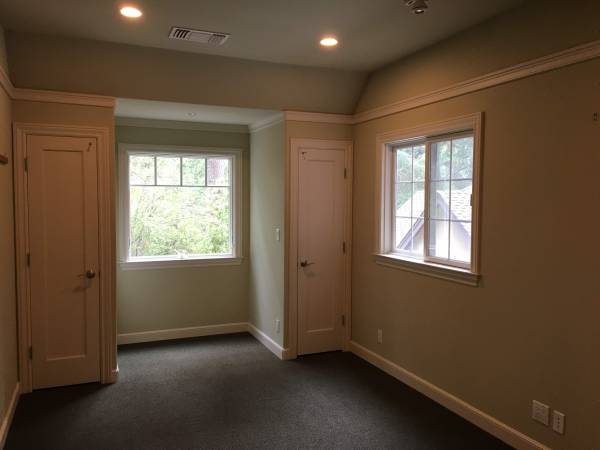 This two-story guest house is tucked in a peaceful, countryside setting surrounded by mature trees and large neighboring estates. The upper level has three bedrooms, one bathroom, a wet bar with mini-fridge, and a balcony overlooking the greenery. The lower level offers about 850 sq. ft. of open living, dining, and kitchen space, with roll-up doors that bring in fresh air and natural light. A private backyard provides space for gardening or quiet outdoor time. Enjoy a calm, rural feel while still being only minutes from Lafayette’s downtown, freeway access, and BART.