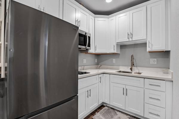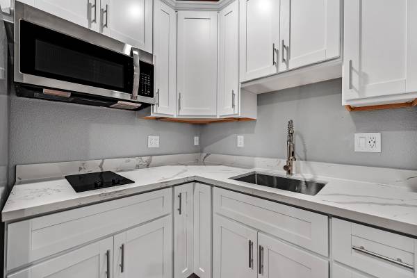 -FULL kitchen with microwave, sink, hot plate, lot of cabinet space