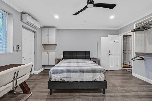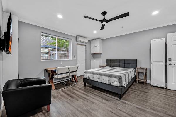 This is a studio that is part of the main house. No one has access to each other's spaces, nor will you see anyone in your space coming or going, the unit it 100% private. This space would be for 1 person only. No pets or kids. No smoking of anything or drug use on the property. No entertaining or overnight guests unless prior arrangement is discussed with owner but generally speaking, I don't allow anyone I do not know besides the person renting staying in the studio in the unit. Street parking only. No other storage on the property other than the studio itself.