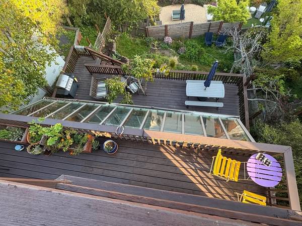DESCRIPTION: Bright and peaceful room for rent in a spacious 3-story light-filled Craftsman home. Located on the bottom floor along with 2 other bedrooms and a shared bathroom. Easy access to our beautiful garden and large deck.