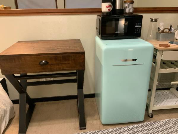 As you can see from the pictures the room is pretty tidy and has everything to be comfortable The best way to contact me is through text and then we can chat on the phone and then you visit. There is a fridge and a microwave.
