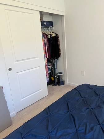 The room available for rent is furnished with a dresser, bookcase and a brand new