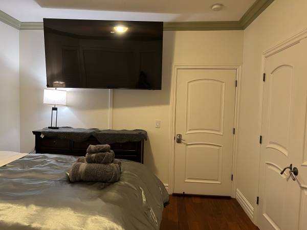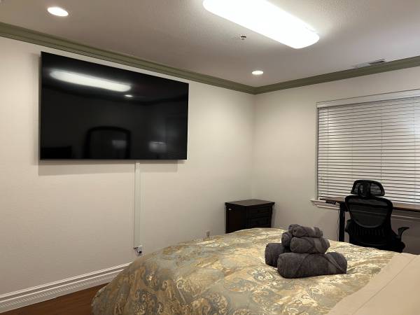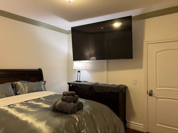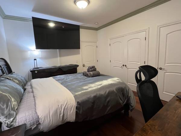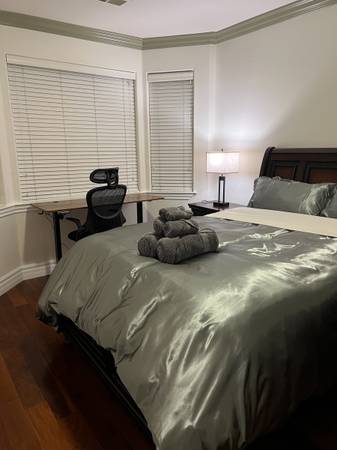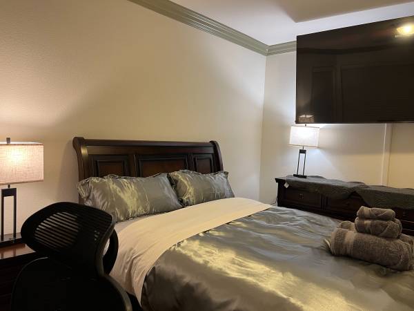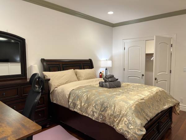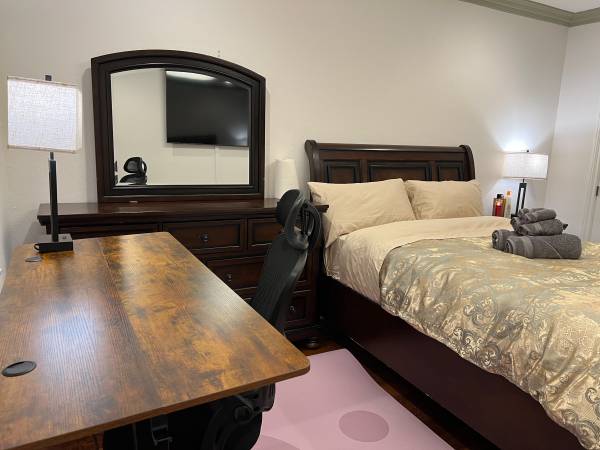 The room is Fully furnished. with 1 Queen Size Bed .85" TV ,Electrical adjustable working desk, dresser with mirror. 2x Nightstand.