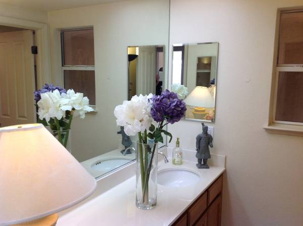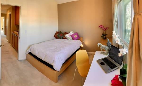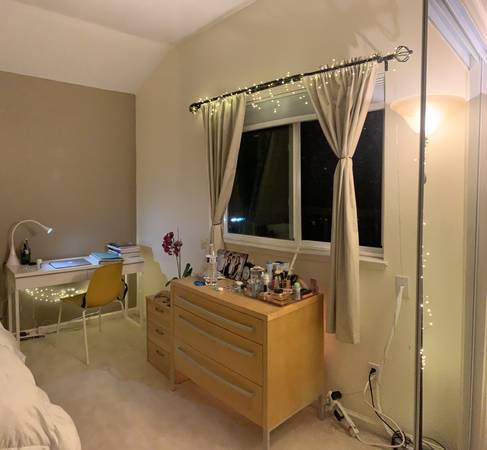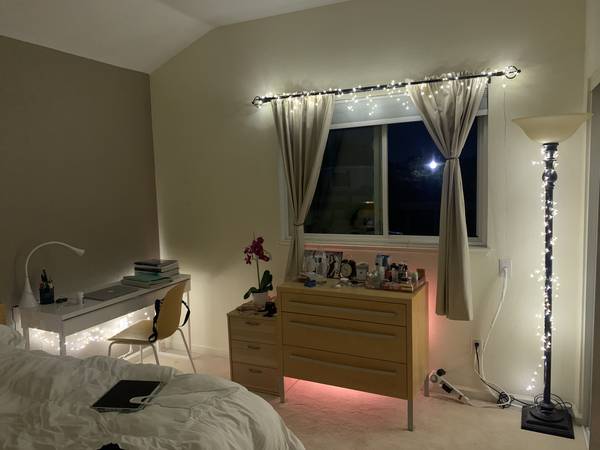 Furnished bedroom for rent with shared bathroom (shower/tub)