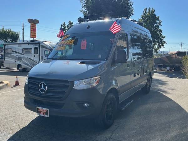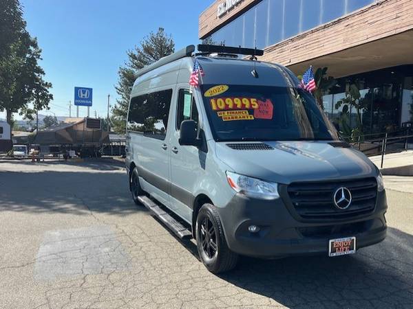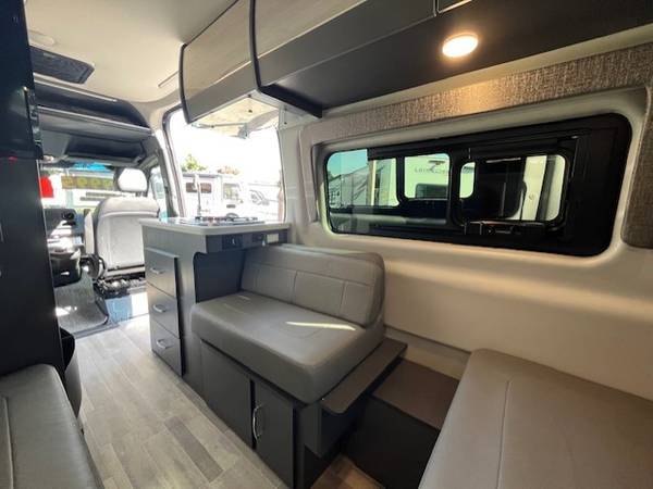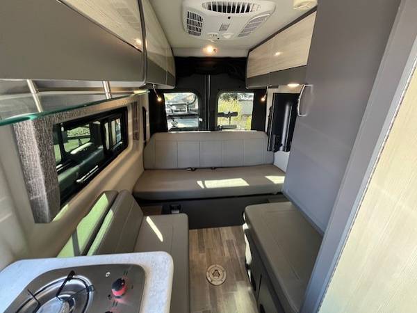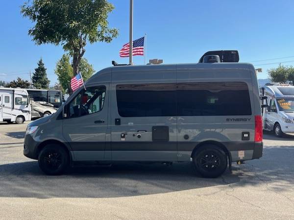 The 2022 Thor Synergy 19P is a Class B diesel motorhome built on a Mercedes-Benz Sprinter chassis, featuring a 19-foot 8-inch length, seating for 5, and sleeping for 2 people. Key specs include a 188 hp V6 diesel engine, 19-gallon fresh water capacity, 6-gallon black water capacity, and a 3500-pound tow hitch. The interior is equipped with a Truma Combi heating system, Norcold refrigerator, and a Truma water heater.