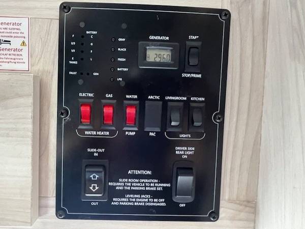 The 2024 Sunseeker 2150SLE is a Class C motorhome with a Ford E350 chassis and a 7.3L V8 engine, offering 450 hp and 468 ft-lbs of torque. It has a 6-speed automatic transmission and a fuel capacity of 55 gallons. Key dimensions include an exterior length of 24.5 feet, an exterior height of 11.25 feet, and an exterior width of 101 inches. The GVWR is 12,500 lbs, and the dry weight is 10,624 lbs, with a payload capacity of 2,327 lbs. It also features 44 gallons of fresh water, 39 gallons of gray water, and 39 gallons of black water capacity.