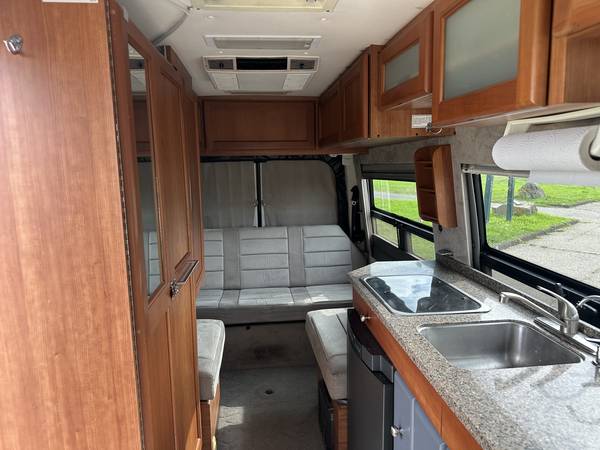 Begin your next adventure in luxury, whether it be in nature, RVing, boondocking, weekend or extended roadtrips, independent living, or as a digital nomad! Enjoy the amenities of an RV without the stress of driving one. This camper van is built on a Sprinter van 2500 chassis and has 113,000 miles. Plus, you can park in a regular parking spot, 19’ long with the backup camera. The powerful Mercedes-Benz Sprinter diesel engine merges easily into traffic at 18 miles per gallon on average. All systems on this Roadtrek are in great condition. The creative layout maximizes space for storage and enjoyment. It has everything you need for comfort and convenience! Seatbelts for 5 passengers.
