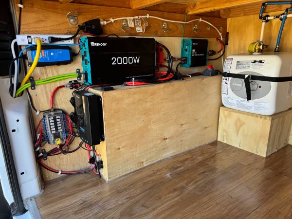 This custom-built Promaster 2500 van conversion is perfect for both off-grid adventures and fixed campsites. It’s equipped with a 280 hp 3.6-liter V6, and with just 22,386 miles and is protected by the Ram powertrain warranty. The 360-Watt solar panels, high-capacity lithium battery, 30-gallon freshwater tank, and on-board propane will keep you going for extended trips away from civilization. This is a high roof, extra length Promaster that provides stand-up headroom, an RV queen bed, and shower/toilet. The kitchen features plenty of cabinet and drawer space, beautiful butcher block countertop with extension, 2-burner propane stove, porcelain farmhouse sink with sprayer faucet, and a 12V Dometic refrigerator/freezer. LED lighting throughout keeps the interior bright when you need it with minimal power draw. The Maxxair roof fan provides cooling when running on solar/battery and the 13,500 BTU Dometic rooftop AC unit is perfect for hot days with shore power. You control the solar/electric and water systems from the interior switch panel and the Renogy and Victron Bluetooth apps on your smartphone.