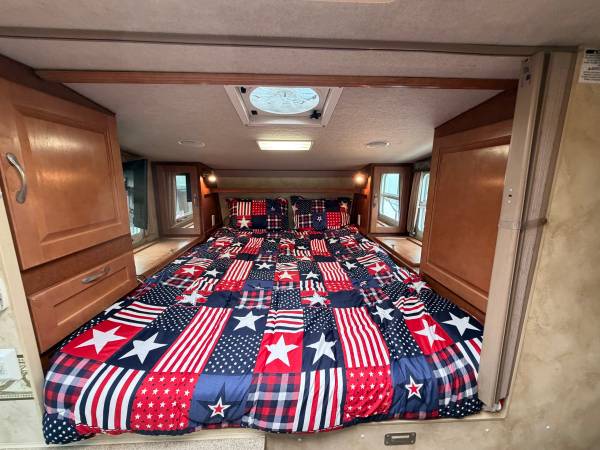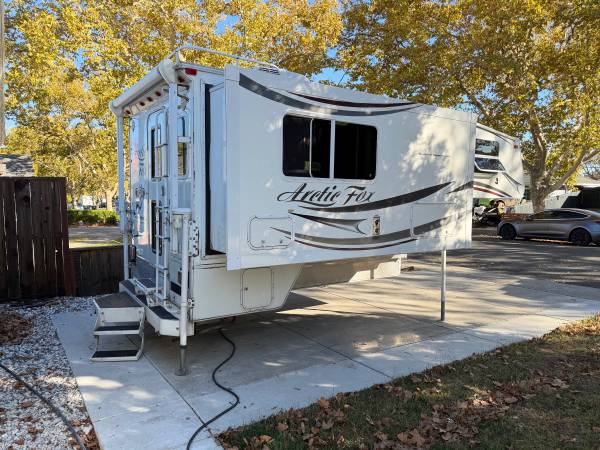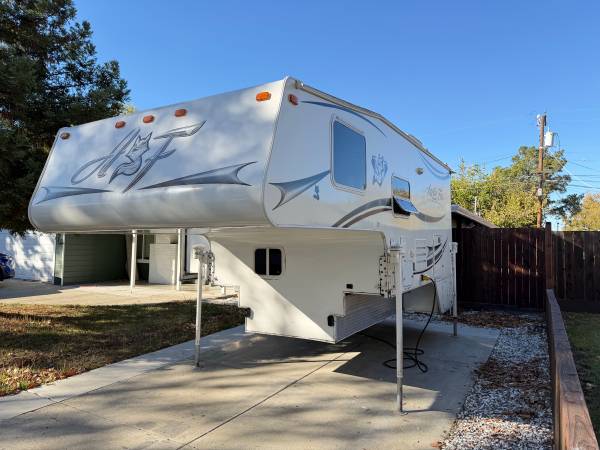 Has electric slide out Onan on board propane generator with 511 hrs this camper is made for a long bed truck everything is fully functional and in great working order A/c blows ice cold heater works great lots of cabinet space dinette with seating up to four people the dinette also drops down into a bed in the kitchen is a double sink three burner stove with oven and microwave three way refrigerator that runs off of 12V/propane or shore power it’s also equipped with electric awning electric landing gear it’s ready to go camping also comes with tie downs four all four corners for more information please feel free to contact me at (415) 886-5046 asking $15,500.