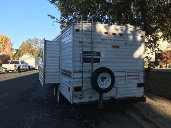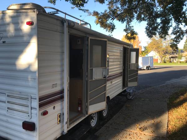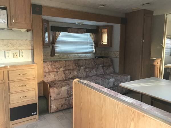 Selling are loved and well-maintained trailer. She has been a great trailer with many years and memories. She’s in the condition you would expect for a 24 year old trailer. Needs a good amount of TLC. New tires and bearings brakes need to be replaced and updated. Slide out is currently not working, but can operated by hand. HVAC/Heater hot water, fridge, stove and cooktop in good working order all original.
