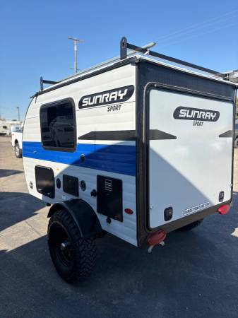 2022 Sunray sport travel trailer 109 model single axle off-road edition 12 feet Sofa sleeper, AC and heat awning roof rack exterior two burner stove, sink refrigerator microwave no bathroom Only...