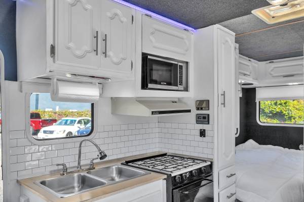 It’s an Ultra by Gulfstream, built on a 1997 Ford E-350 chassis with a V8 5.4 engine. It has only 71,400 miles. It’s compact enough to fit in my driveway, and a lot easier to find parking compared to most RVs.
