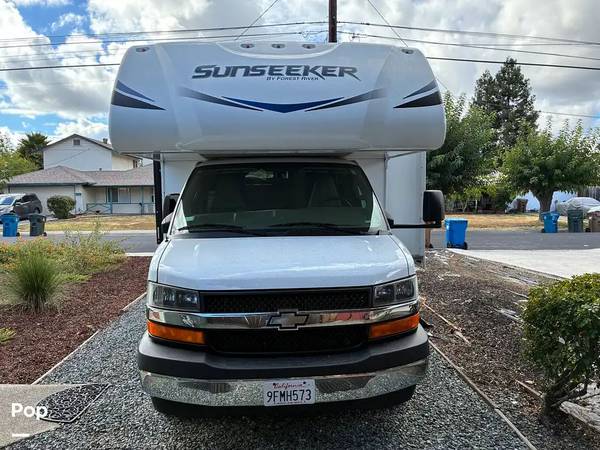 She is a 2018 Sunseeker 2290S model built on a 2017 Chevy 4500 chassis, 30,099 miles, regularly serviced. Queen-size corner bed model, single slide, with full bath, large U-shaped dinette, full kitchen with 3-burner propane stove, oven and microwave, dual electric/gas refrigerator. 4000 Onan generator with under 150 hrs of use. The dinette collapses into a single bed and the loft sleeps two for a total of 5 possible sleeping spaces. Upgraded shocks, tires (new in 2023), steering stabilizer, 400 watts solar, SoftStart AC, 4000 watt inverter/converter and 2 Battle Born lithium batteries for drycamping convenience. A couple minor cosmetic issues not affecting drivability or body. Sale includes hoses, electric cord, TPMS, leveling blocks, optional 1-USA ebike rack.