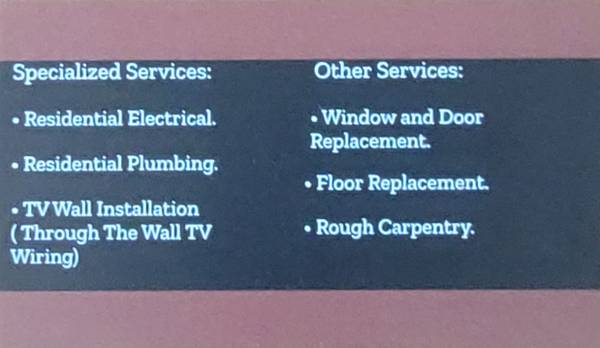 Very professional oriented Local handyman with many skills, we are all about business to make sure your project is done within permitted schedule.