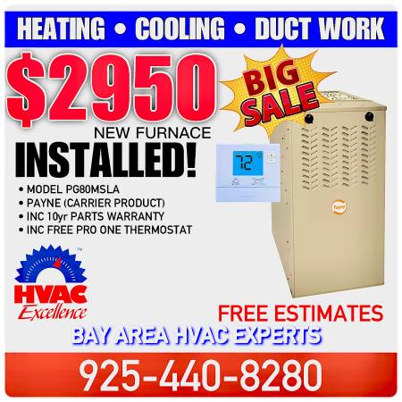 Bay Area Heating and Air Conditioning All Home Appliances Expert Technicians, Licensed Bonded and Insured, We have over 30 years Experience in the HVAC trade offering Wholesale Pricing on all equipment, that’s Huge Savings if your in the market for a New System. We also offer FREE DIAGNOSTIC w/repair on all Air Conditioning and Heating Issues, Being a Carrier dealer were able to access same day replacement parts at extremely competitive prices. Call 925-440-8280 we will be happy to assist you