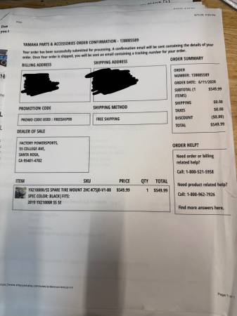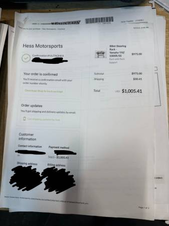 I have posted all paperwork on parts that have been added. Some are missing but I have most. I also have a trailer I’m willing to sell. Pinks for both Yxz and trailer.