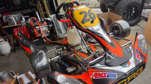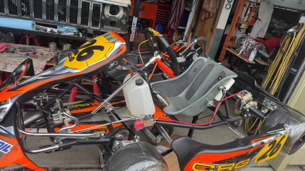 CRG FS4 chassis with Brigg LO206 racing engine and kart stand + Micron5. Very low hours (3 track days) with a 90lbs driver. All spares go with the sale. We just didn't have time to use it as we attended and was prepped for the off season and stayed covered since. Kart is complete. Like new.
