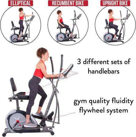 Elliptical Trainer, Upright Stationary, and Recumbent Exercise Bike Plus Seated and Sprint Road Bike Cycling