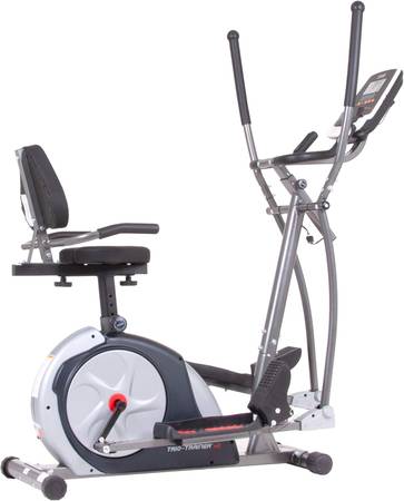 The trio-trainer features a patented design that combines 3 of the most effective cardio machines into 1.