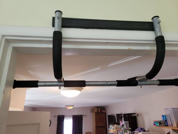 This is a convenient pull up bar that will fit any standard doorway. It can be used for pull ups and push ups.