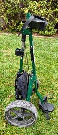 For Sale is a Wide Trac Lightweight Foldable 2-Wheel Push/Pull Golf Cart in very nice working condition. Why pay to rent a cart when you can buy one for a great price.