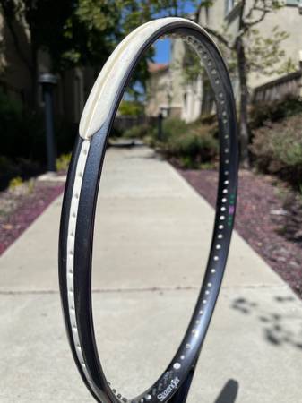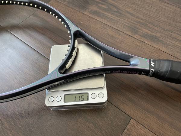 95 sq. inches, regular 27” length, 16x19 string pattern, 4 5/8 (L5) grip size with 2 over grips over the pallet, unstrung. It has a slightly thicker tapered beam on the sides. $50 for it. I am in Davis.