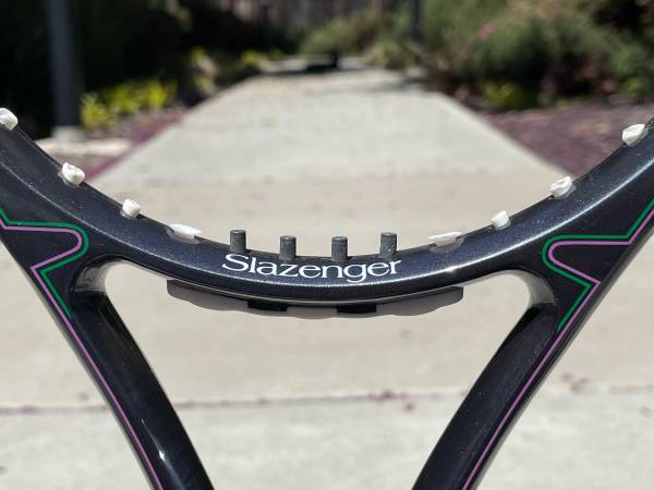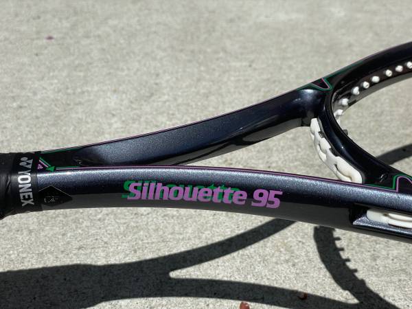 This Slazenger Silhouette 95 midplus tennis racket is in excellent 8.5/10 shape with no cracks. There are some light scratches from play, nothing serious at all. This is a heavy powerful racket with a lot of plow through. So it is recommended for strong intermediate/advanced players.