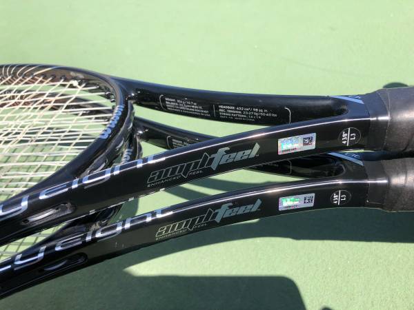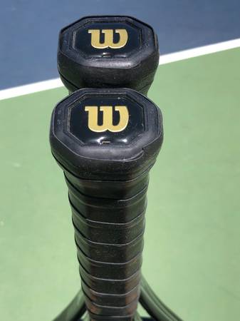 Both (2) Wilson Blade 98 V4 16x19 midplus tennis rackets are in good 8/10 shapes with no cracks, normal scratches from play, nothing serious. 98 sq. inches, 16x19 string pattern, 304 grams (10.7 oz) unstrung weight, regular 27” length, 4 3/8 (L3) grip sizes, strung at 50 lbs with Wilson NXT Power 17 ($20 multifilament strings). $100 each racket or $180 total for both rackets. I am in Davis.