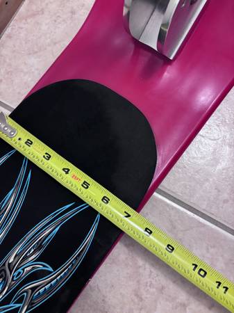 Nice used Snow Jack Scooter by Sic. It has adjustable height handlebars. Rear pressure brake. Measures up to 3 feet tall at the handlebars and 42" long, 7" wide.