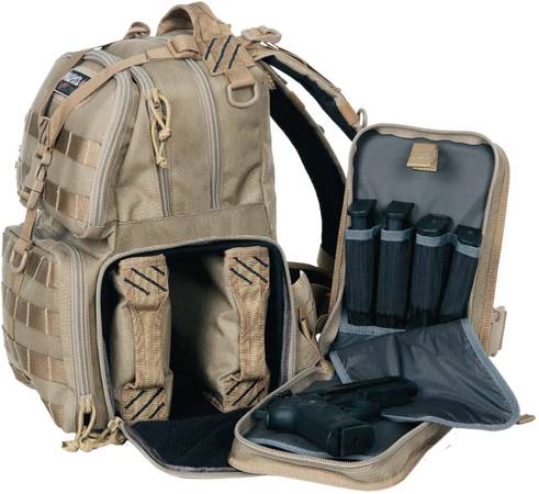 Tactical Range Backpack from G.P.S. is designed to provide hands-free, secure transport for handguns, ammunition, and accessories to and from range.