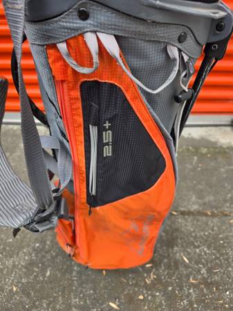 Sun Mountain extra light standing golf bag Very good overall condition. There were a small cut at the bottom that was repaired with tape.